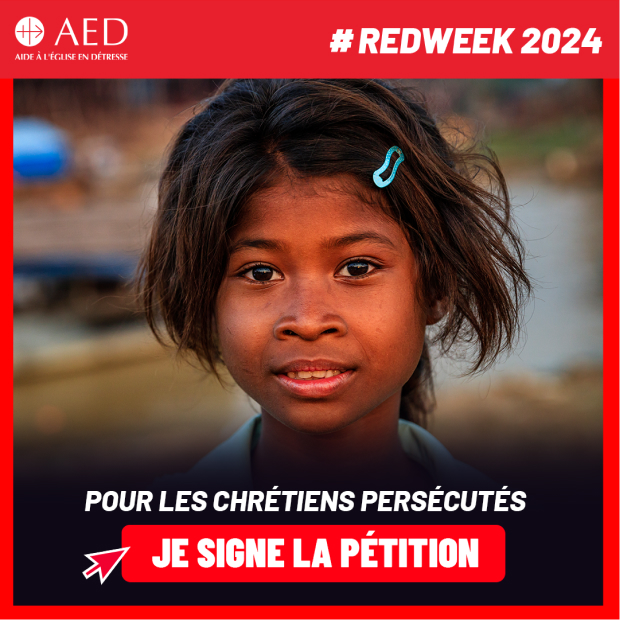 Depuis 2015, au mois de novembre, l’AED organise à travers le monde la #RedWeek et donne une voix aux chrétiens persécutés : chaque jour des chrétiens sont opprimés, menacés, ou persécutés en raison de leur foi. Cette détresse est trop souvent ignorée. L’AED veut rendre visible cette souffrance invisible.