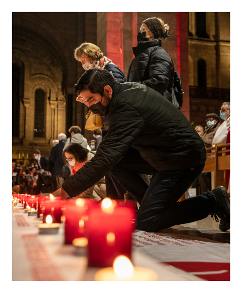 En 2024, l’AED organise la 15ème Nuit des Témoins, une veillée ponctuée de témoignages, de chants et de méditations sur les fruits du martyre au cours de laquelle sont égrenés les noms des chrétiens (prêtres, religieux et religieuses) tués dans l’année, tandis que leurs portraits sont portés en procession jusqu’à l’autel.